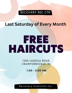 The Recovery Rec Center offers free hair cuts on the last Saturday of every month from 1 PM to 5 PM.