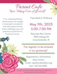FreeJoin other parents at the Parent Café, Wednesday, May 11th from 5 PM to 7 PM to discuss taking care of yourself.
