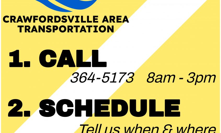Read More...Call: 364-5173 – 8 AM to 3 PM Schedule: Tell them when and where Ride: Safe, Clean, Reliable Visit https://www.crawfordsville.in.gov/452/Public-Transportation?fbclid=IwY2xjawQxIfBleHRuA2FlbQIxMABicmlkETF3Vm9BWW81SHBYQUc4Q25zc3J0YwZhcHBfaWQQMjIyMDM5MTc4ODIwMDg5MgABHgZkb2bKd1rSB7h0Lfa4t7bo-nUSM5nn3HY2wNbY4pqiQiKzIv2urPFP62ZP_aem_FFj6F4SkY0yQgm8xMlm5LQ for more information!