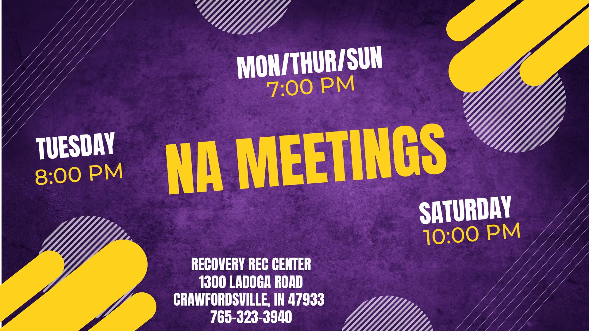 The Recovery Rec Center offer NA meetings on: